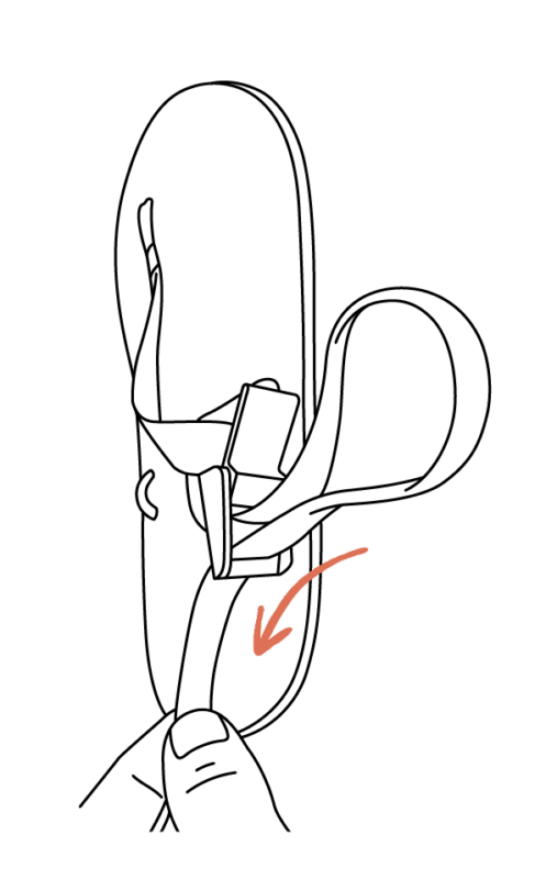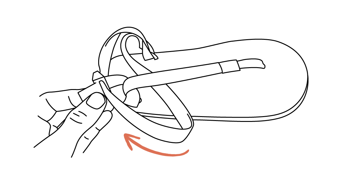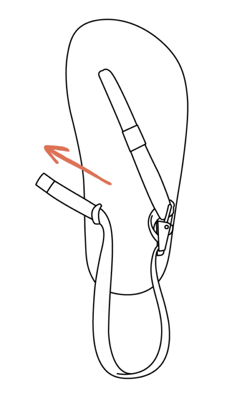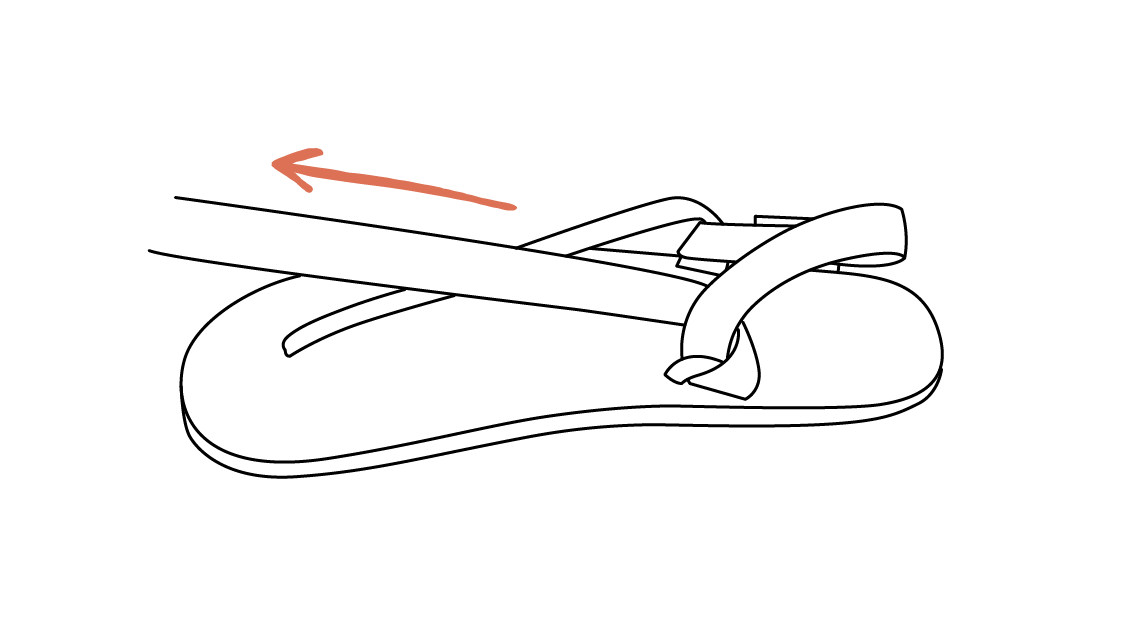 1. יש לנעול את הסנדל ולבצע את השריכה בעמידה בכדי לדייק את מידת מתיחת הרצועה באופן הרצוי. נשחיל את הרצועה לתוך הלולאה החיצונית.