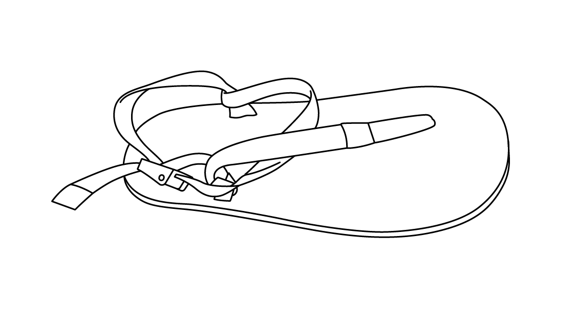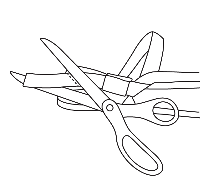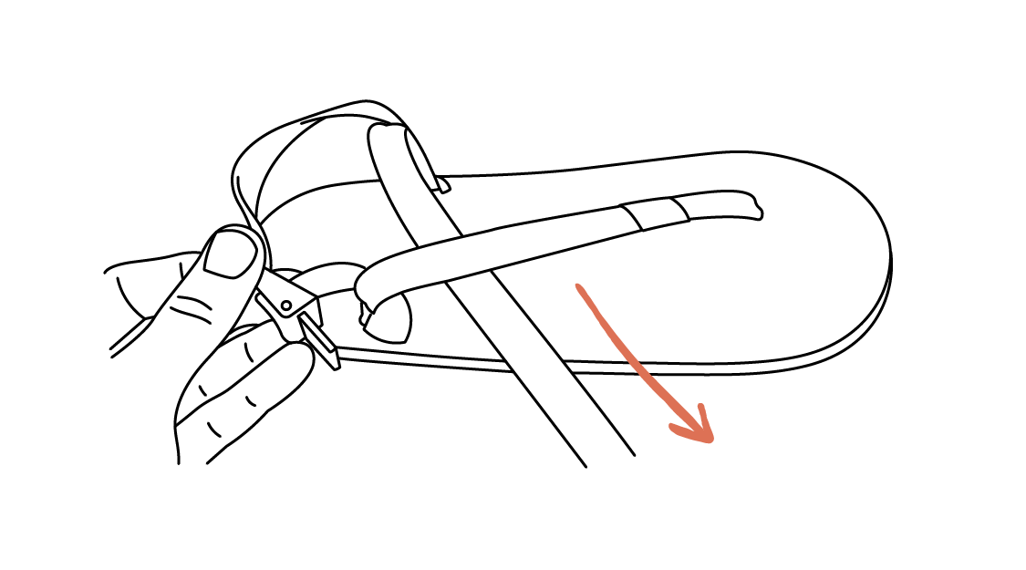 1. לאחר התאמת אורך רצועת הסנדל יש להשאיר כ 3-4 ס''מ עודף רצועה מחוץ לאבזם לכיוון עקב כף הרגל. יש לחתוך בזווית עם מספריים.