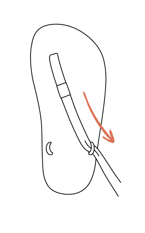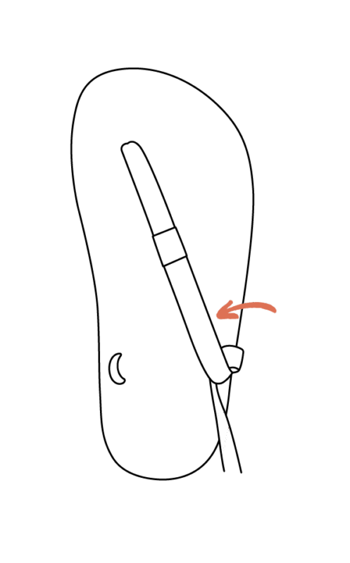 8. נשחיל את הרצועה מתחת לרצועת העקב בכיוון חרטום הסנדל.