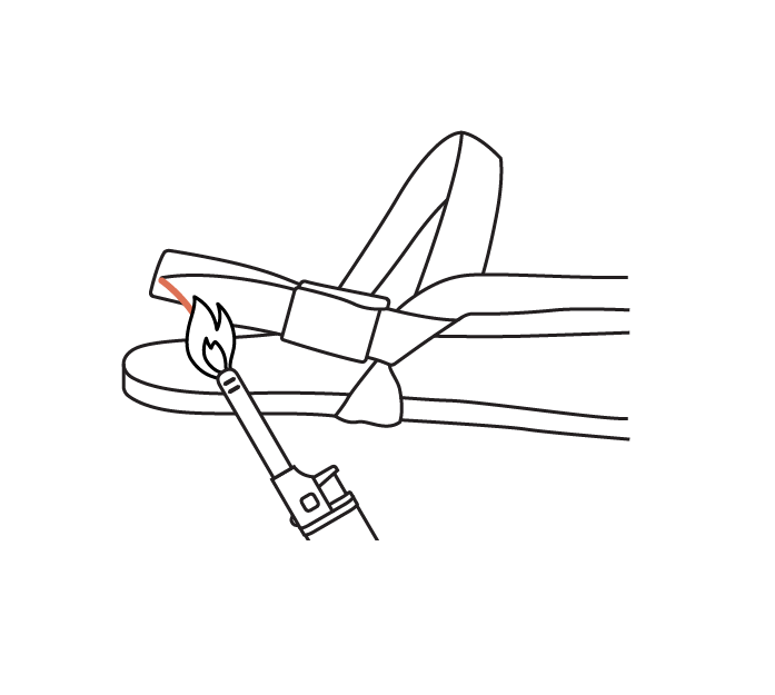 2. מיד לאחר גזירת קצה הרצועה יש להתיך את קצה הרצועה בעזרת מצית/נר בכדי שלא ייפרם. יש לחמם את קצה הרצועה בעדינות עם האש במשך מספר שניות.