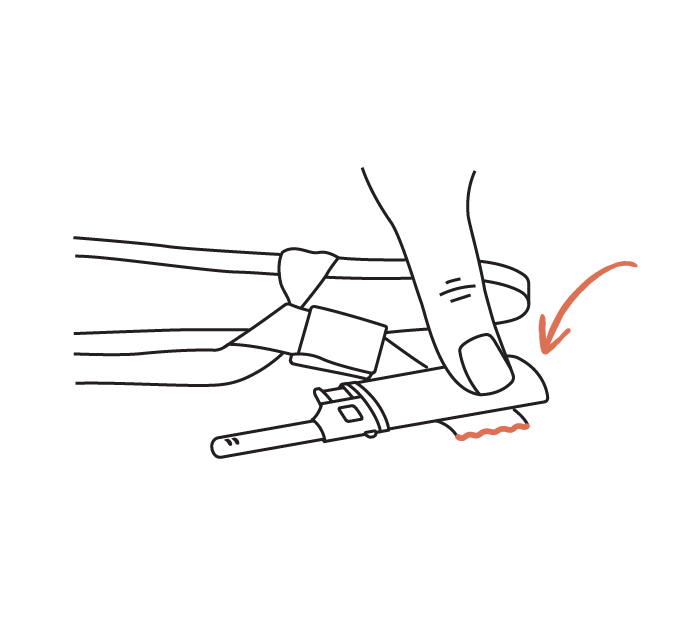 3. בעזרת המצית או אביזר אחר למעוך את קצה הרצועה המותך.