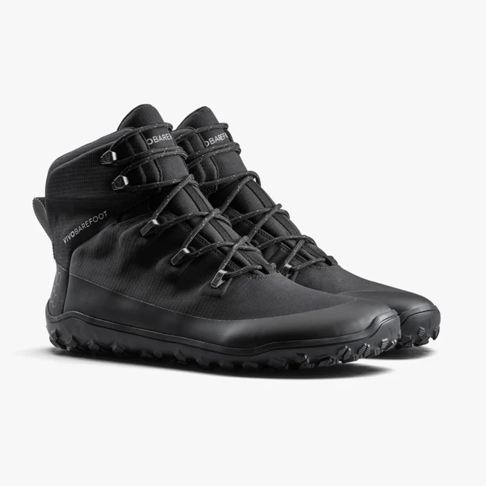 מגפי ברפוט קלים, טבעוניים ועמידים, לשימוש בשטח. סוליה שטוחה (דרופ 0), דקה, וגמישה. גריפ הסוליה בתבנית לאגים (זיזים) עמוקים לאחיזת קרקע יעילה בתנאי שטח שונים. תא בהונות רחב מאפשר פרישת בהונות טבעית, שיפור שיווי משקל ותמיכה טבעית בייצוב הגוף. גפה מחוזקת בהדבקות היקפיות מחומרים ממוחזרים. נעל שטח אמינה, קלה, ומאווררת לטיולים והרפתקאות בטבע.